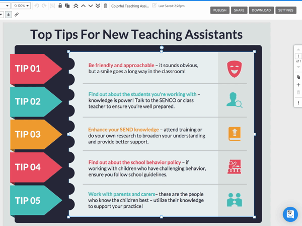 Create engaging diagrams, process infographics, and data visualizations that convey complex information simply. You can create visual assets without any design experience whatsoever.